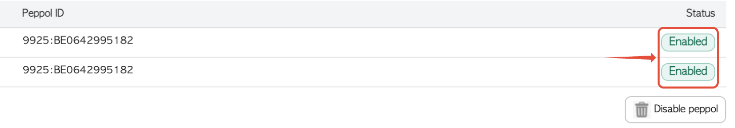 Once activated, you can view your Peppol status in the Peppol tab within your company entity.