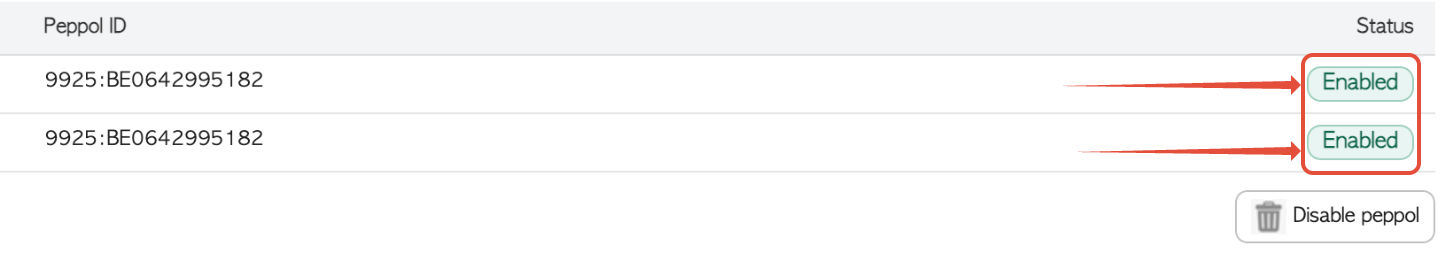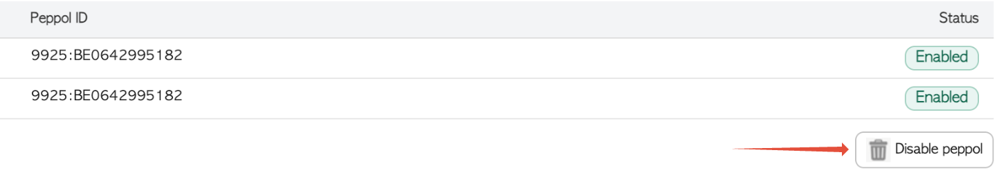 Sélectionnez Désactiver Peppol